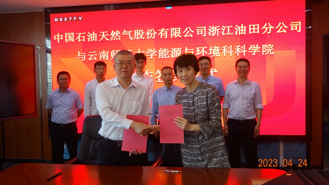 4月24日下午,能源与环境科学学院与中国石油天然气股份有限公司浙江油田分公司在能环学院举行“太阳能+高原特色农业发展”合作签约仪式。中石油浙江油田分公司新能源事业部副经理刘磊、经理助理朱政宣、技术专家王国伟;学校科学技术处处长李明,能环学院院长徐锐,副书记向泰,副院长陈玉保、夏涛及学院相关专业教师参加签约仪式。会议由陈玉保主持。