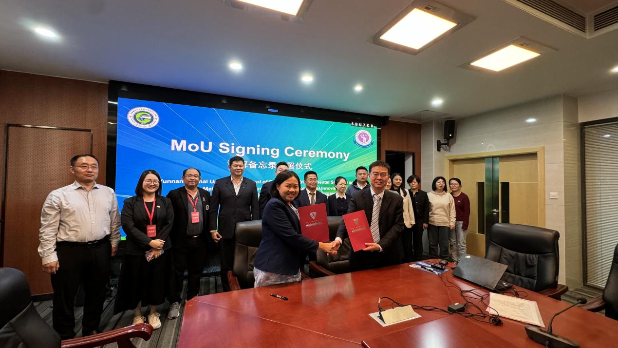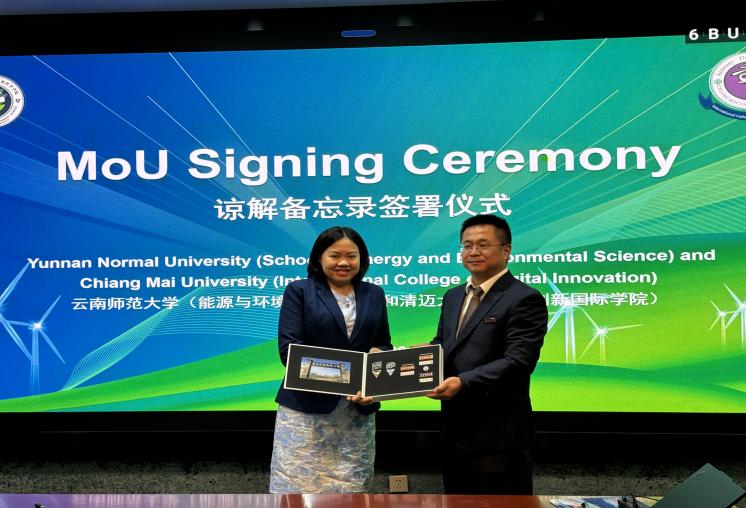 2025年10月20日,云南师范大学能源与环境科学学院与清迈大学数字创新国际学院在学院227会议室隆重举行谅解备忘录签署仪式。仪式由能源与环境科学学院党委书记向泰主持,中方出席代表为能源与环境科学学院党委书记向泰、学院班子成员及教师代表,泰方出席代表为泰国清迈大学数字创新国际学院副院长Benjamas Suksatit及代表团成员。