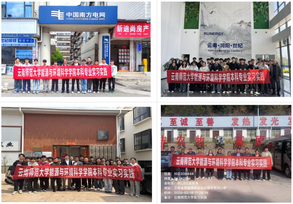 近日,云南师范大学能源与环境科学学院组织2023级本科生,分赴昆明市农业农村局、云南电力建设监理咨询有限公司、润阳世纪光伏有限公司、众科生物技术有限公司等本科实习实践实训基地,开展专业调研和专业实习。同学们走出课堂、扎根一线,在“田野课堂”与生产车间中锤炼本领,以实际行动服务国家“双碳”战略与乡村振兴。