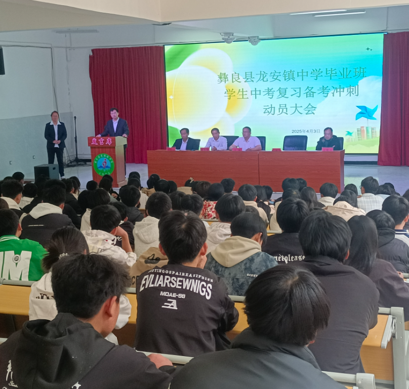 2025年4月3日下午,龙安镇中学初中毕业班学生中考复习备考冲刺动员大会在龙安镇中学大礼堂举行,我支部博士生党员王豪吉同志作为特邀嘉宾参加动员大会并发言。