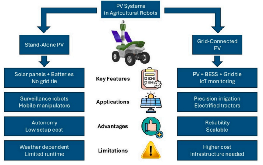 太阳能驱动的农业机器人因其将可再生能源与自主导航技术相结合的独特优势,在现代农业的可持续发展中展现出巨大潜力。本文系统综述了太阳能农业机器人的技术协同效应、可持续性影响以及未来自动农业的发展路径,旨在解决农业生产中对化石燃料的依赖问题,并降低温室气体(GHG)排放与生态毒性。