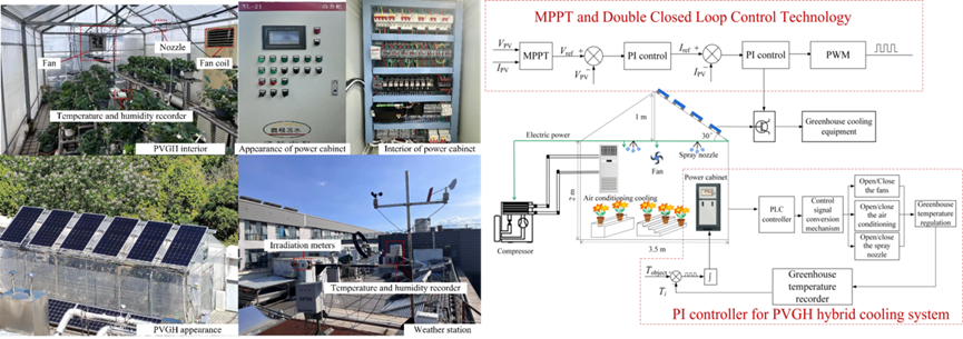 针对光伏温室中作物温湿需求与温室源荷控制存在的问题,该团队构建温湿解耦控制策略,通过调控直流侧光伏电能变换器,实现光伏最大功率点与蓄电池组荷电状态精准控制,并且提升了温室系统能量自耗率与自给率。该成果以“Hybrid cooling for a strawberry photovoltaic greenhouse and energy evaluation”为题,于2025年11月1日发表在Energy期刊(中科院一区,IF=9.4),硕士研究生姚晶莹为第一作者,马逊教授为通讯作者。