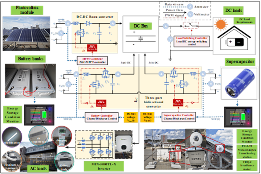 面对光伏功率受太阳辐照影响产生波动、传统算法难以平衡储能相关指标的问题,该团队提出用于混合储能系统容量配置的低通滤波算法,并且设计450W三端口直流变换器实现混合储能系统控制。结果表明,该算法可将混合储能容量降低2.65%-78%,20kW光伏系统全年波动率降低0.07%-64.53%。成果以“Optimal power allocation and capacity configuration based on variable cut-off frequency low-pass filtering for photovoltaic with hybrid energy storage system”为题,于2026年1月1日发表在Renewable Energy期刊(中科院一区,IF=9.1),硕士研究生阚小博为第一作者,马逊教授为通讯作者。