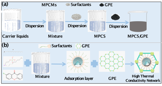 在相变微胶囊制备技术方面,相变微胶囊悬浮液因兼具高潜热与微对流效应,在冷能存储领域展现出显著的应用潜力。然而,其分散稳定性差与热导率低等问题严重制约了实际应用。为解决上述瓶颈,现有研究多通过引入功能添加剂进行改性,但添加剂的引入可能破坏体系稳定性或稀释潜热,亟须在稳定性与热性能之间实现协同优化。针对上述问题,本课题组系统地探究了基液类型、密度、表面活性剂种类及石墨烯浓度对相变微胶囊悬浮液性能的影响。研究表明,以去离子水与异丙醇按3.58:4.24质量比配制密度为0.87 g/cm³的基液,并采用亲水亲油平衡值为27.9、质量比为1:1的十二烷基硫酸钠与十六烷基三甲基氯化铵复合表面活性剂,可使悬浮液保持30天分散稳定性。在此基础上引入高导热二维石墨烯材料,当石墨烯浓度为1 wt%时,热导率达0.3092 W/(m·K),较未添加时提高7.26%。经100次冷热循环后,复合悬浮液潜热损失保持在14.5%以内,表明石墨烯有效增强了循环稳定性。本研究所制备的悬浮液相变温度适配3−8℃果蔬保鲜温区,兼具优异的冷量储存与传递性能,能够满足果蔬冷链物流、光伏驱动冷藏库等场景的冷能存储与温控要求。该研究成果于近日以《Preparation of cold-storage microencapsulated phase change suspension: dispersion stability and thermal conductivity performance improvement》为题发表在《Energy》(一区TOP期刊,IF=9.4)上,DOI:10.1016/j.energy.2025.139777,硕士研究生杨依婷为第一作者,张莹博士为通讯作者。研究工作得到云南省基础研究专项课题(202301AT070082)、云南省兴滇人才-青年人才项目资助。