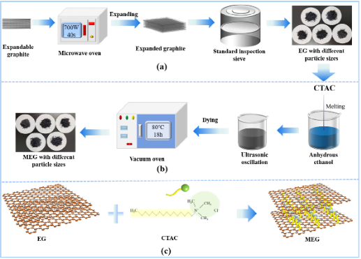 另外,在碳基水基复合相变材料制备方面,膨胀石墨(EG)做填料的复合相变材料表现出高导热系数、制备简单、低成本,以及复合材料的低相变泄漏等优点。但EG晶格结构稳定不会发生相变。因此,引入EG会导致复合材料热导率提升而潜热下降的拮抗效应。针对上述问题,课题组提出了EG亲水改性与尺寸协同优化的调控策略,通过十六烷基三甲基氯化铵改性EG制备复合甘露醇水性相变材料,并验证了EG非极性和粒径对拮抗作用的影响。通过差示扫描量热法分别在不同粒径的改性膨胀石墨和不同改性剂比例下评估了复合材料的热性能。通过0.09 g CATC改性的80目膨胀石墨达到了最佳吸附容量,与未改性的EG相比提高了74.13%,接触角减小到9.36°,熔化温度−2.43°C,熔化潜热272.85 J/g。与甘露醇水基相变材料相比,熔化潜热的最大降幅小于11.71%。经100次冻融循环后,其熔化温度出现了较小的波动,熔化潜热仅下降了3.06%。该研究为改性膨胀石墨水基复合相变材料应用于食品制冷保鲜的可行性提供了实验数据支撑。研究成果于2026年3月1日以《Fabrication of water-based composite phase change materials for cold energy storage with expanded graphite: Hydrophilic modification, particle size and mass fraction optimization》为题发表在《Journal of Energy Storage》(二区期刊,IF=9.8)上,DOI:10.1016/j.est.2025.120002,学院硕士研究生杨新甜为第一作者,张莹博士为通讯作者。研究工作得到云南省基础研究专项课题(202301AT070082)、云南省兴滇人才-青年人才项目资助。